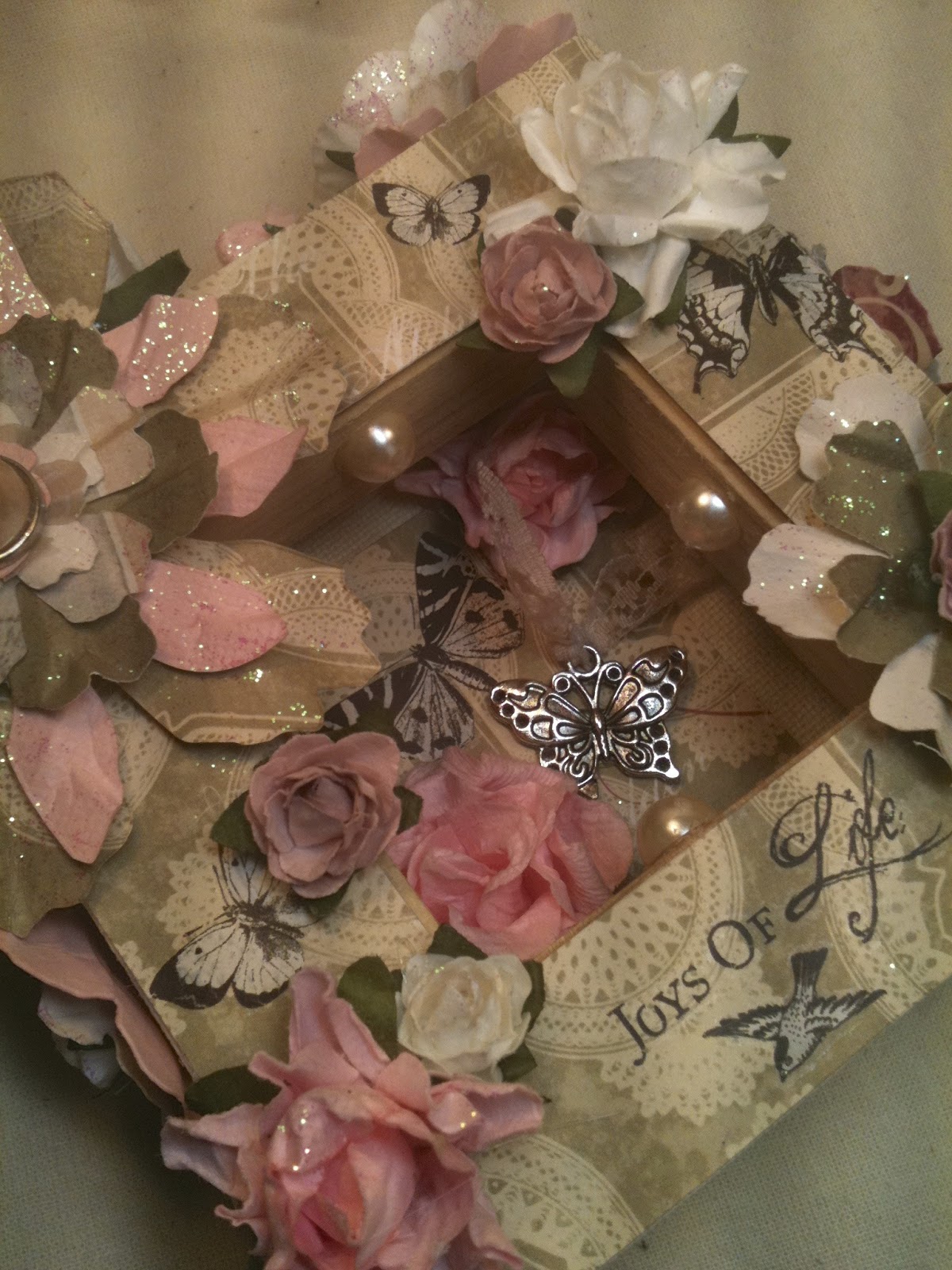 | where you see a ribbon and charm i have attached them so you can slip larger photos underneath. Theres an extra flap here too!! |